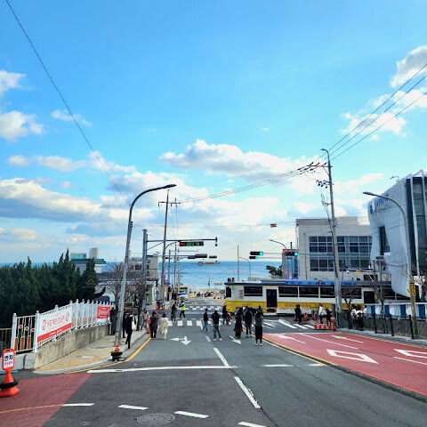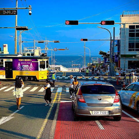 우연히 보고 사진 몇 장 찍었어요. 관광객도 많고 활기 넘치는 곳이었어요. 바다 풍경 배경이든, 차 배경이든 정말 아름다웠어요. 부산은 정말 아름다워요.