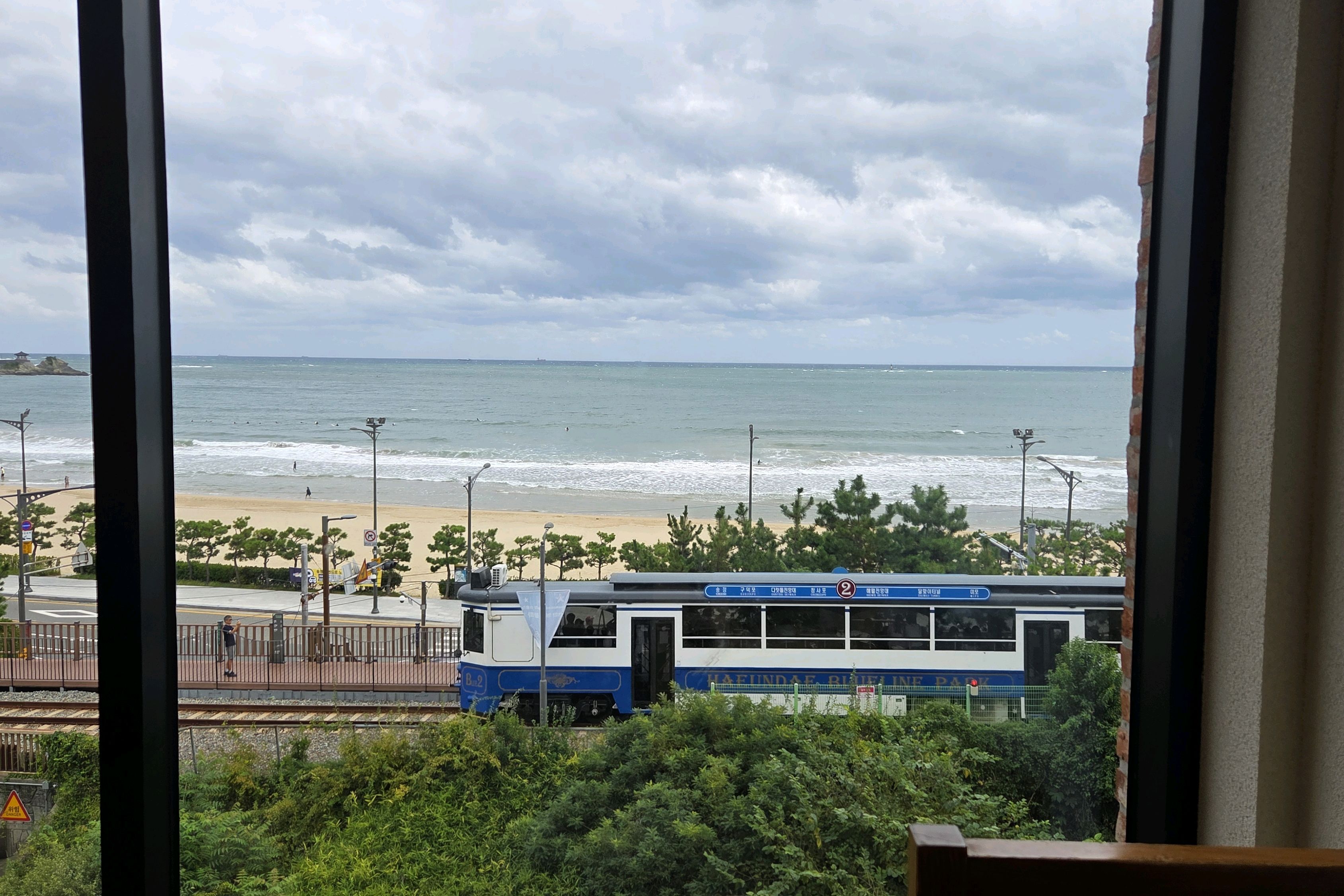 이번에 해안 열차를 타는 경험은 꽤 신선했습니다. 모든 좌석이 바다를 향해 있어서 10분 남짓 만에 바다 전망을 감상할 수 있었습니다.