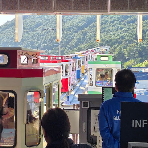 해운대 블루라인 파크 - 청사포역은 부산에서 꼭 가봐야 할 명소 중 하나입니다. 캡슐 열차는 매우 인기가 많아 원하는 시간대를 이용하려면 최소 일주일 전에 예약해야 합니다. 일반 열차도 출퇴근 시간에는 꽤 붐빌 수 있습니다.