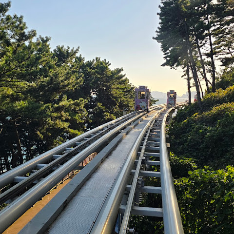 코스 길이도 딱 좋았어요. 미포에서 올때는 대기가 길고 재승차는 언제탈지 미지수도 있고 입석으로 왔어요. 지인이 올때는 캡슐타라고 팁을 알려줬어요. 그래도 즐거운 시간이었답니다.