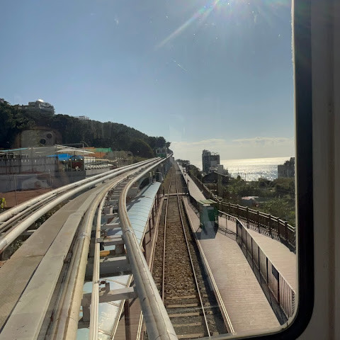 이번에 해안 열차를 타는 경험은 꽤 신선했습니다. 모든 좌석이 바다를 향해 있어서 10분 남짓 만에 바다 전망을 감상할 수 있었습니다.