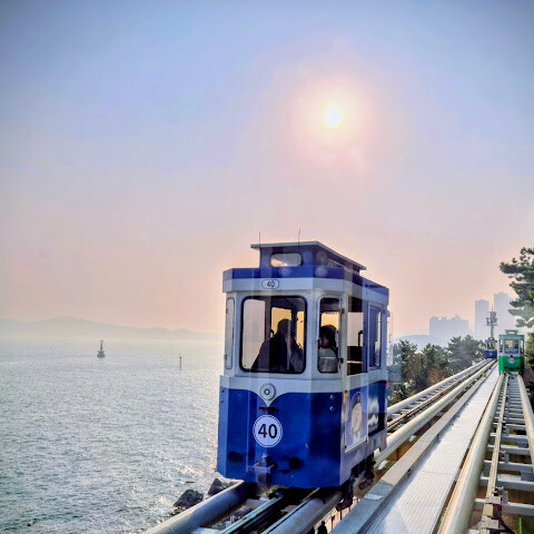 부산에서 할 수 있는 최고의 활동 중 하나는 기차를 타고 고속도로를 천천히 가로지르며 바다 풍경을 감상하는 것입니다.