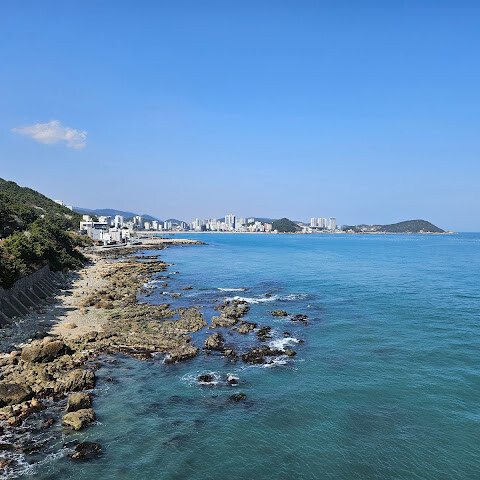 스카이 캡슐을 타지 않거나 티켓이 매진된 경우, 미포에서 청사포까지 또는 그 반대 방향으로 해안선을 따라 1~2km 정도 걸어가시면 멋진 전망대를 감상하실 수 있습니다. 3월 말에는 시원한 바람이 불어옵니다.