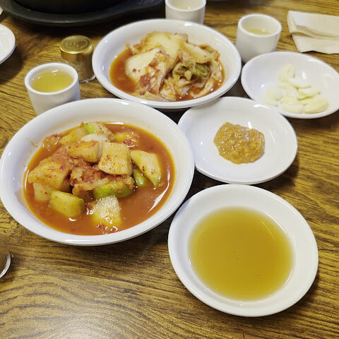 궁궐 방문 후 관광객들이 많이 찾는 곳입니다. 이 식당은 주로 인삼닭탕과 해물파전 같은 반찬을 제공합니다. 이곳의 대표 메뉴인 인삼과 대추가 들어간 찹쌀 삼계탕은 맛이 밍밍했습니다. 서울의 다른 삼계탕집과 별반 다를 게 없었습니다. 식당 분위기와 인테리어는 전통적인 한나라풍이었습니다. 서비스는 그저 그랬습니다. 처음 들어갔을 때 접수원은 우리를 자리에 앉히고 싶어 하지 않았습니다. 옆집 다른 삼계탕집(같은 주인이지만 전통적인 한나라풍 인테리어는 아닌 곳)을 추천했습니다. 우리가 꼭 여기서 먹겠다고 고집하자 그제야 들어갈 수 있었습니다. 처음 들어갔을 때는 손님도 많지 않았습니다. 이 식당은 모든 손님이 메인 요리를 하나씩 주문해야 한다는 규칙이 있어서, 우리 5명은 결국 국 4개와 파전 1개를 주문했습니다. 재사용 가능한 메뉴판은 기름때와 얼룩으로 범벅이 되어 있어서 만지기도 싫었습니다.