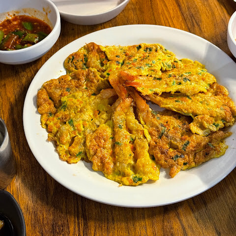 시그니처 메뉴는 콤비네이션전(한국식 피자 또는 팬케이크), 해산물 플래터입니다. 양념된 꼬막은 맛있고 술이 필요합니다.