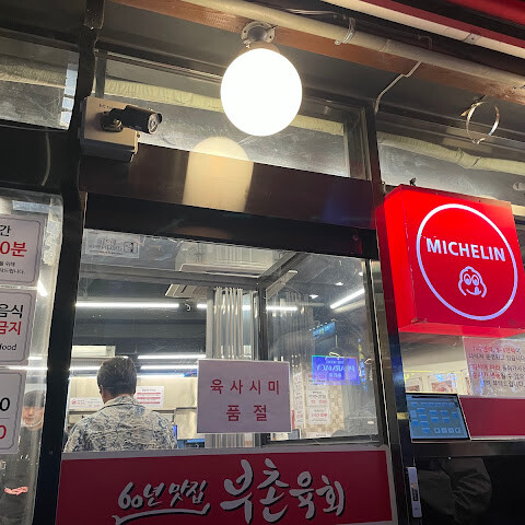 광장시장에 유명한 육회집. 육회집이 많은데 유독 유명하다. 미슐랭에 매년 선정되어서 그런 모양. 바쁜 매장 답게 다양한 국적의 손님들이 오고, 예약시스템을 이용해야한다. 점심 시간 좀 지난 이후에 방문했음에도, 15분 이상 대기하였다. 고기는 정말 신선하고 고소한 육회비빔밥이 일품이었다. 함께 나오는 소고기 무국도 깔끔하고 맛있는 편. 주차는 어렵다.