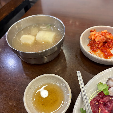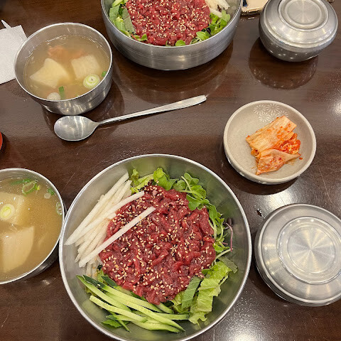 이 육회집은 제가 가본 육회집 중 최고였어요! 게다가 푸짐한 소고기탕도 무료로 제공해 주더라고요! 탕 맛도 정말 좋고, 원하는 만큼 리필도 가능해요. 직원분들도 너무 친절했어요.