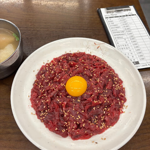 명성이 손님을 만들기도 하지만 이곳은 정말 대단한 맛집입니다. 이때까지 먹어본 육회 중 가장 신선하고 맛있었습니다.