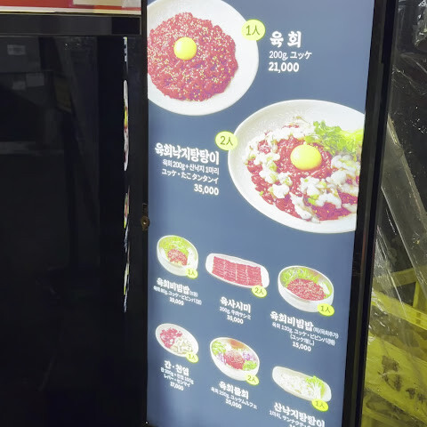 부초유화는 생고기 타르타르(육회)로 유명하며 그 품질은 명성에 걸맞은 품질을 자랑합니다.