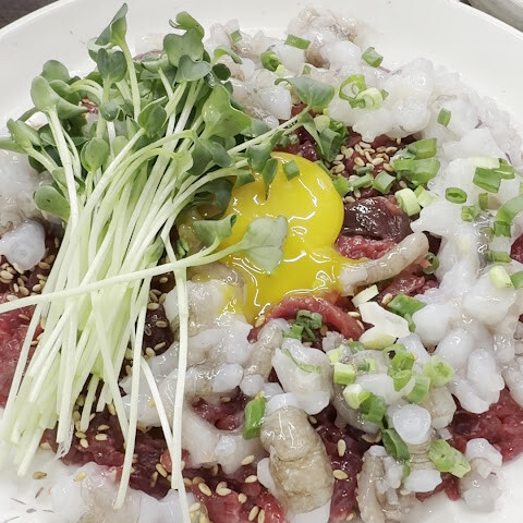 우선 간판 메뉴의 유케가 정말 맛있습니다! 고기의 신선도가 단차로, 냄새는 일절 없고, 씹을 정도로 맛과 단맛이 퍼집니다! 양념의 밸런스도 절묘하고, 참기름의 향기가 너무 강하지 않고, 고기 그 자체의 맛을 제대로 즐길 수 있었습니다! 유케를 좋아하는 사람은 물론 평소 너무 생고기를 먹지 않는 사람도 맛있게 느낀다고 생각합니다!