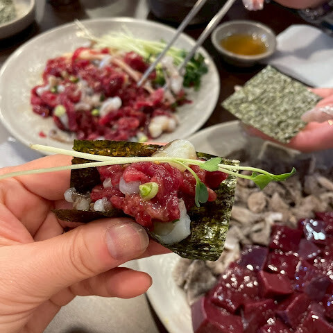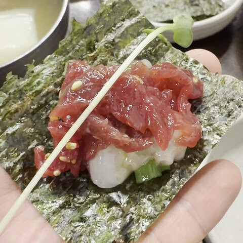 얼른 유케와 레바 찔러 먹고 다른 가게에서 한국 요리를 먹는 것이 좋을지도 모릅니다.