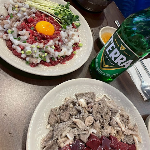 전통적인 분위기에서 정말 맛있는 육회를 즐길 수 있어요! 살아있는 낙지를 곁들인 메뉴도 꼭 드셔보세요!!