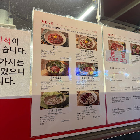 한국을 여행하면서 관광지에 몇 군데 다녀봤기 때문에 과대광고일까 봐 걱정했는데, 전혀 아니었어요. 엄청 인기 있는 곳이지만, 이곳은 정말 최고였어요. 서비스가 정말 빨랐어요. 오픈하자마자 바로 가서 대기할 필요가 없었어요. 바로 음식을 받았는데 정말 맛있었어요. 한국식 무국은 진짜 맛있었습니다. 조언 하나 드리자면, 일행 중 한 명당 한 끼씩 주문해야 해요. 저희 둘이서 육회비빔밥 하나랑 일반 육회 하나를 주문했는데, 종류가 다양해서 완벽했어요. 모두가 같은 메뉴를 먹는 것보다 훨씬 나았어요. 고기를 찍어 먹는 참기름도 제가 먹어본 참기름 중 최고였어요. 고소하고 짭짤했어요. 고기와 정말 잘 어울렸어요. 기다리지 않고 이곳을 맛보고 싶다면 일찍 가세요. 늦게 가면 줄이 더 길어질 거예요. 저희가 나올 때 줄이 길었어요.
