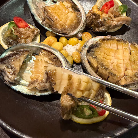 구운 전복은 쫄깃쫄깃하고 완벽하게 구워졌어요. 레몬즙이 살짝 뿌려진 것 같았는데, 은은하고 거의 느껴지지 않을 정도의 레몬 향이 났어요.