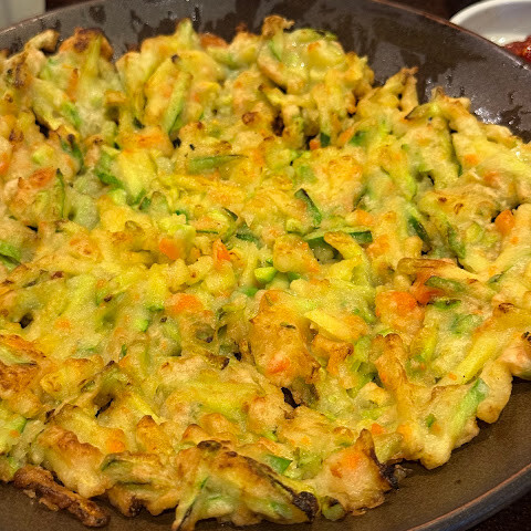 친구가 해물전과 삼계탕을 주문했는데 양이 정말 어마어마했어요! 해물전은 나눠 먹기로 했는데, 친구는 삼계탕을 혼자 먹었어요. 해물전이 정말 컸어요! 따뜻하게 간장에 찍어 먹으니 향긋하고 바삭했어요 🤤🤤🤤