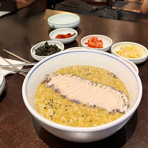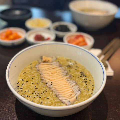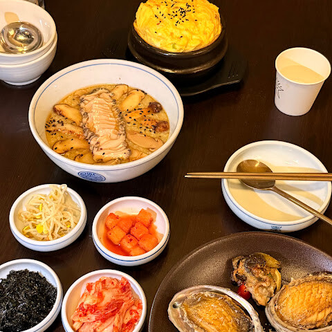 전복죽이 최고입니다. 죽의 맛은 매우 풍성합니다. 우리가 주문한 해산물 팬케이크도 너무 맛있어요. 인삼삼계탕은 인삼 맛이 너무 부드럽고 좋습니다. 몸, 마음, 영혼 및 추운 날씨에 좋습니다. 여기 온 걸 절대 후회하지 마세요