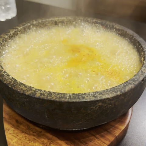 이건 정말 제가 한국에서 먹어본 전복과 송이버섯 죽 중 최고였어요. 향도 진하고, 맛도 정말 끝내줬어요. 친구랑 저 둘 다 만점을 줬어요 (흠잡을 데가 전혀 없었거든요). 버터 전복도 시켰는데, 갓 잡아서 구워줬어요. 전복 크기가 제 손바닥만 했을 정도로 컸어요!