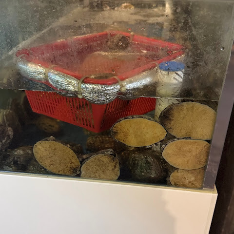 중국어를 할 줄 아는 아주머니가 계셔서 의사소통에는 전혀 문제가 없었습니다. 주문을 하고 나니 사용할 전복을 직접 보여주셨는데, 전복 하나하나가 손바닥만 한 크기였고, 심지어 꿈틀거리고 있었어요!