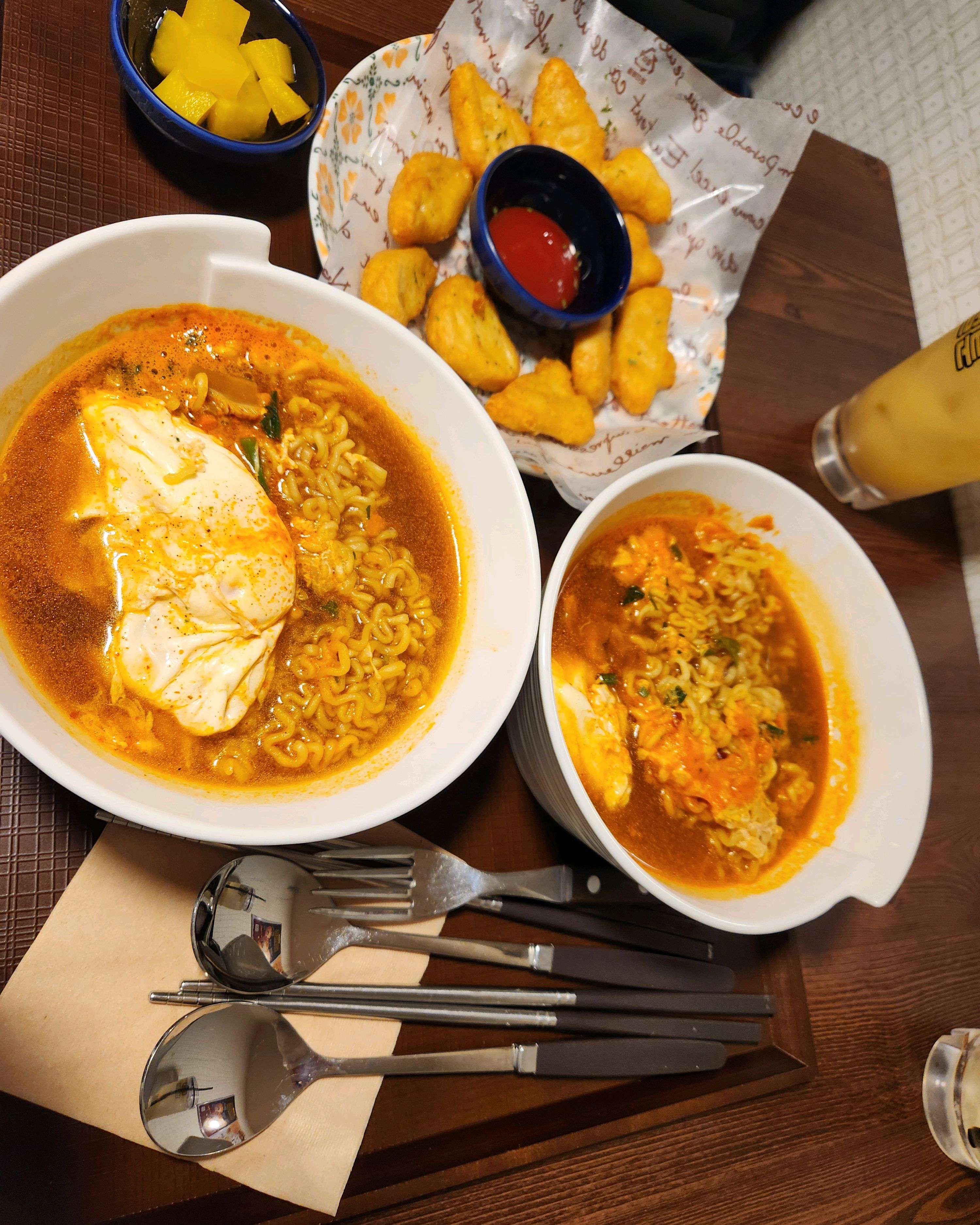 라면은 기계가 2대인듯.. 3개시키면 2개먼저 달라고 해야 안불은거 먹을수 있어요 남이 끊여준 라면 먹고 싶었는데 맛있었어요~ㅎㅎ