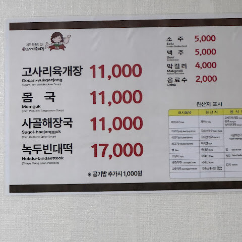 제주도에 머물던 중 날씨가 너무 추워서 친구들과 늦은 밤에 따뜻한 음식이 생각나서 이 식당에 갔는데, 정말 최고의 선택이었어요! 식당은 아주 적극적인 여성분들이 운영하시는데, 음식 맛이 정말 집밥처럼 정성이 담겨 있었어요. 특히 국물 요리가 맛있고 속을 따뜻하게 해줘서 정말 많이 먹었어요.<br><br>영어 메뉴도 있고, 직원분들이 영어를 잘하지는 못하지만 놀라울 정도로 효율적이고 친절했어요. 음식의 질과 양을 생각하면 가격도 아주 합리적이었어요. 꼭 한번 방문해 보시길 추천합니다.