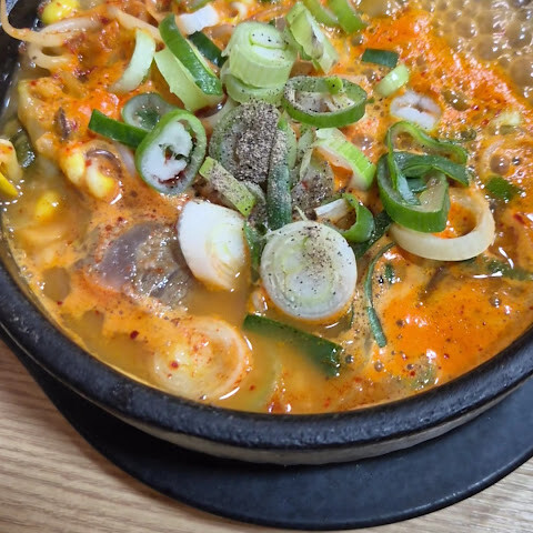 리뷰에 따르면, 앱 주문 대기 시간이 꽤 길었어요 (근처에 전용 주차장이 있고, 번호는 한국어로만 안내되어 있어요. 토요일 밤에 번호표를 받으러 온 여자분이 30분 정도 걸린다고 하셨거든요). 그래서 테이크아웃으로 주문하고 주문 후 10분 정도 후에 나왔어요.<br><br>댓글에 메뉴 공유해 주셔서 감사합니다. 첫 번째 메뉴는 고사리육개장(1만 위안), 네 번째 메뉴는 녹두전(1만 5천 위안)이었어요. 번역 프로그램을 써서 도저히 알아들을 수가 없었어요 😂<br><br>해장국은 아주 걸쭉했는데, 매운 음식은 별로 안 좋아하고 죽이나 찌개를 좋아하는 제 입맛에 딱 맞았어요. 꼭 다시 가봐야겠어요. 녹두전에는 다진 고기(?)가 들어 있는 것 같았는데, 양도 꽤 많았어요!