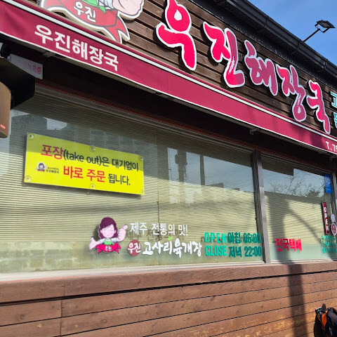 제주도 가면 꼭 먹어야하는 우진해장국!! 토요일 오전 6시 반에 방문했더니 대기 없이 바로 들어갈 수 있었어요.