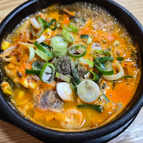 테이크아웃을 강력 추천합니다. 15분 만에 맛있게 드실 수 있어요! 메인 코스는 모두 맛있어서 이틀 연속으로 먹었답니다. 이렇게 맛있는 국밥집이 있을 수 있나요? 평소 죽을 좋아하는 친구들은 줄을 서서 먹어야 할 정도예요!<br>녹두전은 햄버거 스테이크와 비슷하고 약간 매콤하며, 다른 해장국이나 사골국도 강력 추천합니다.