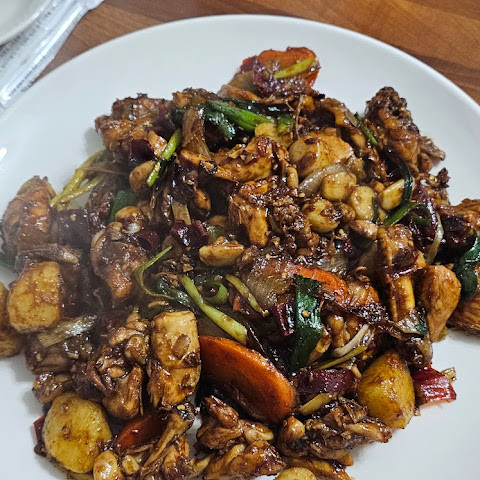 일반 가정집을 개조한듯한 느낌의 식당입니다. 조림닭의 감자가 덜익어서 별한개 뺍니다. 밑간없이 작게 토막내어 주문즉시 압력솥으로 조리한 후 양념과 함께 볶는것 같습니다. 밑간 미리해두면 맛있을것같은데 간이 속까지 안베어있는게 아쉽지만 맛있게 먹었습니다. 양이 많습니다. 배불러요~