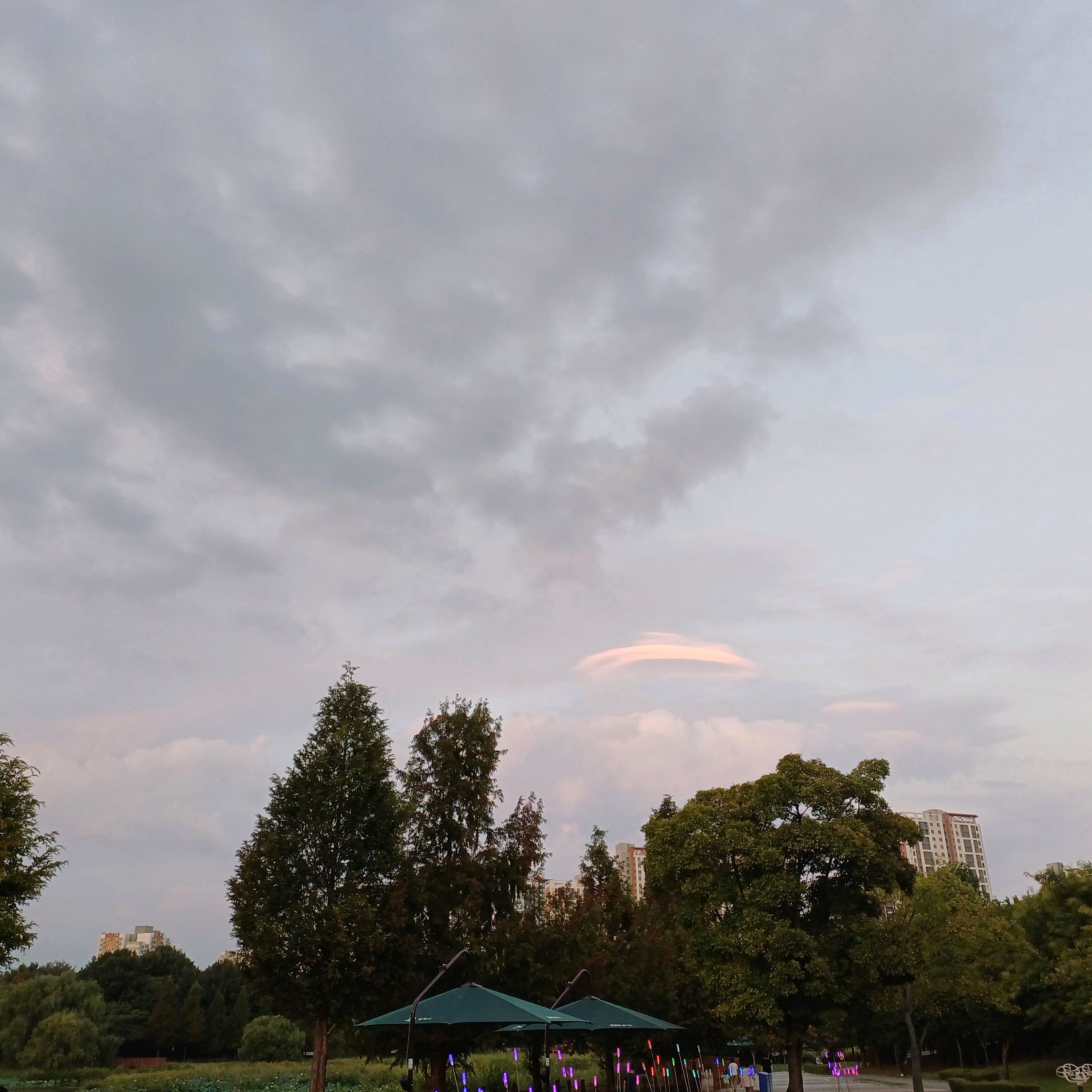 가을 문턱에서 하늘이 변화무쌍해 지고 있네요 평택 노을 뷰가 멋진 도심속 생태공원이라 피크닉하기 좋아요 오늘은 신기한 구름이 있어서 한참 감상했어요