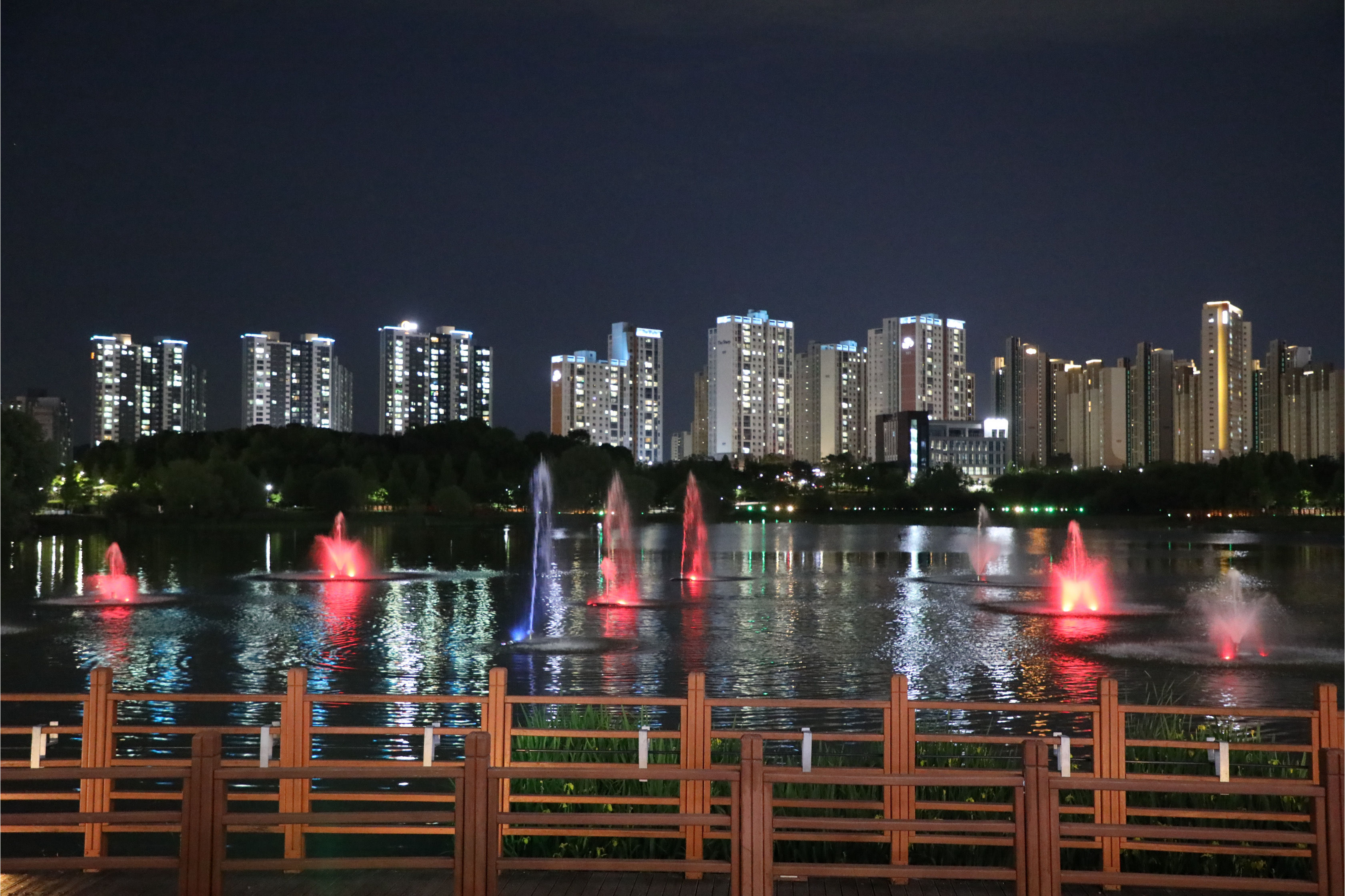 단양 3개월 살기를 하며 간간히 집에 갈 때가 있다. 귀가에 앞서 잠깐 평택 배다리근린공원에 도착했다. 주차공간이 없어서 배다리도서관에 차를 대고 바로 배다리근린공원의 야경을 감상한다. 야간에는 몇 시까지 분수대를 운영하는지 몰라도 방문했을 땐 가동 중이라 화려해 보인다. 한 바퀴 천천히 도는데 30여 분이 소요된다.이곳은 어느 때 오든 주민들이 산책을 많이 한다. 그만큼 인기가 좋은 곳이다.