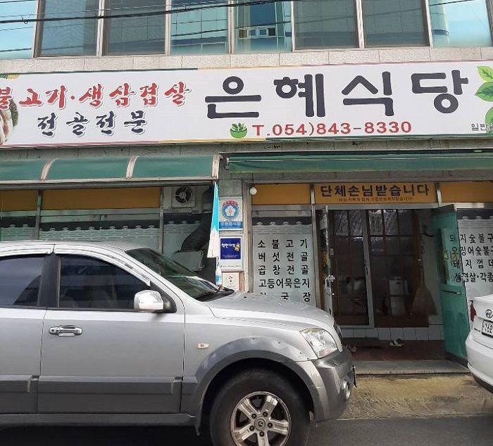 경찰서 건너편에 있는 은혜식당이다. 대표메뉴는 한식이며, 돼지 주물럭이랑 청국장, 콩국수를 제공한다.