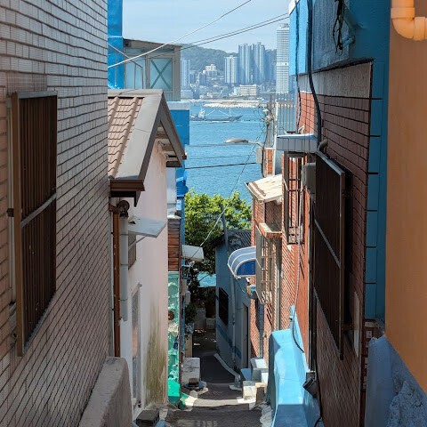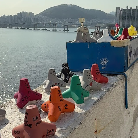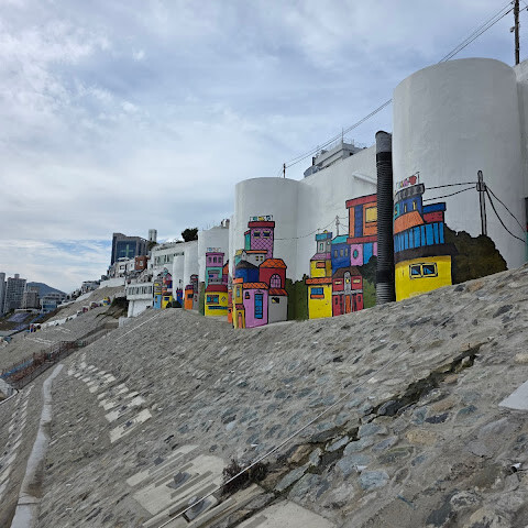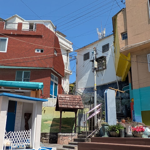 아름다운 건물들과 멋진 해안 산책로가 있습니다.<br><br>'한국의 산토리니'로 알려져 있지만, 하얀색과 파란색 집은 몇 채 없고, 감천처럼 대부분 무지개색입니다.<br><br>이곳은 전쟁 중에 생겨난 판자촌 중 하나였지만, 최근 재개발되었습니다.<br><br>감천만큼 화려하지는 않지만, 산책하기 좋고 아기자기한 가게들이 많습니다. 게다가 덜 붐빕니다.