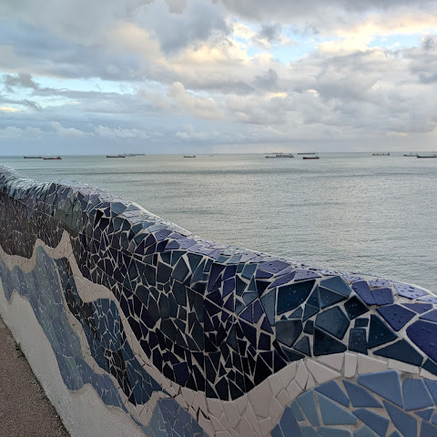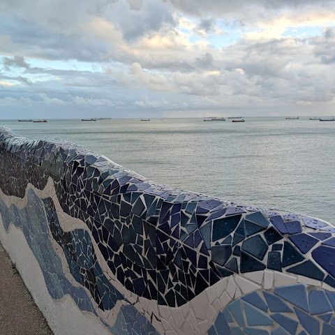 정말 예술적인 곳이에요! 아름다운 바다 전망과 독특한 상점들 외에도 맛있는 아이스크림 가게와 벽에 걸린 벽화들이 정말 아름답습니다. 아래 산책로는 공사 중이라 갈 수 없지만, 그래도 멋진 곳입니다.