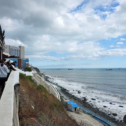 해변을 따라 펼쳐진 멋진 산책로에는 경치 좋은 레스토랑들이 즐비합니다. 아래쪽에는 파란색 산책로도 있고, 북쪽으로 더 가면 방문할 수 있는 터널도 있습니다.
