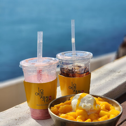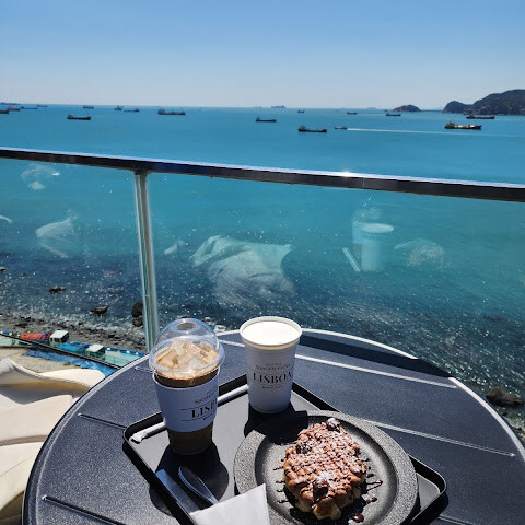 근처 카페들이 괜찮아요. 커피와 케이크를 먹으며 바다를 바라보는 건 정말 편안한 시간이에요.