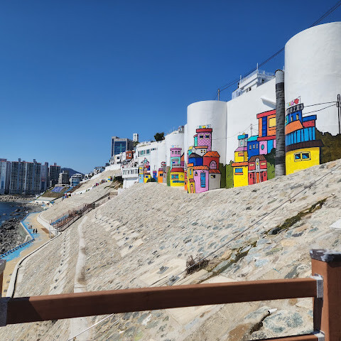 최고의 문화 마을 중 하나입니다. 제가 갔을 때는 관광객은 거의 없고 현지인들로 가득했습니다. 아름다운 해안가를 따라 산책하며 멋진 경치와 파도 소리를 즐길 수 있습니다. 모든 것이 깨끗하고 잘 관리되어 있습니다. 이곳은 한국의 산토리니로 불립니다. 부산에 오시면 꼭 방문해야 할 곳입니다.