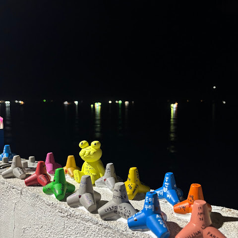 마을 자체는 좁은 골목길과 바다 전망, 예술적인 분위기가 어우러져 매력적이고 한적한 느낌을 줍니다. 특히 좋았던 점은 마을 곳곳에 자리한 작고 아늑한 카페들이었어요. 대부분 가족이 운영하는 곳 같아서 더욱 친근하고 따뜻한 분위기를 느낄 수 있었습니다. 메뉴는 단순하지만, 그게 바로 혜녀문화마을의 매력이에요. 여유롭게 커피나 디저트를 즐기며 해안 풍경을 감상하기에 딱 좋았습니다.