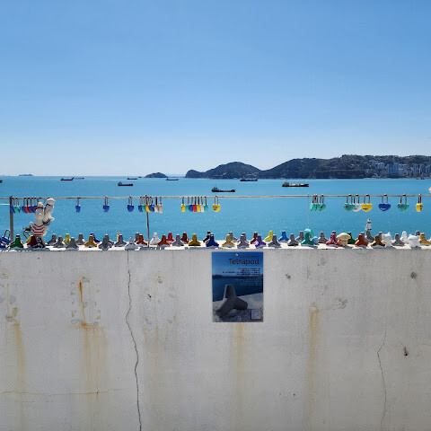 개인적으로 부산 문화마을 중에서 가장 마음에 드는 곳이에요. 언덕 위층에는 카페와 아기자기한 가게들이 있고, 바닷가 쪽으로 가면 작은 터널도 있어요. 맑은 날에 가면 멋진 경치를 감상할 수 있어서 좋아요.