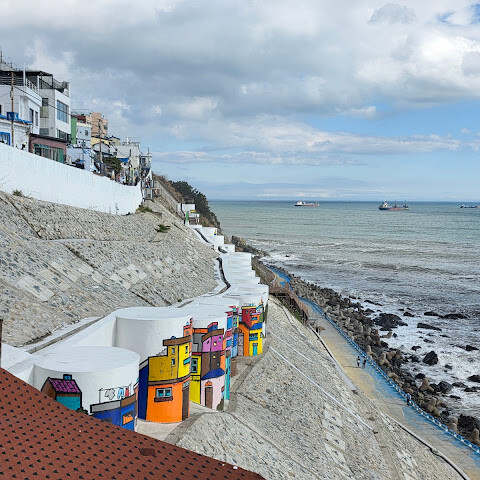 원래 한국전쟁 피난민 정착촌이었던 이곳은 해안 풍경과 문화가 어우러진 독특한 마을로 재탄생했습니다.