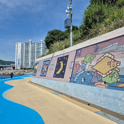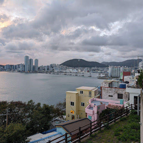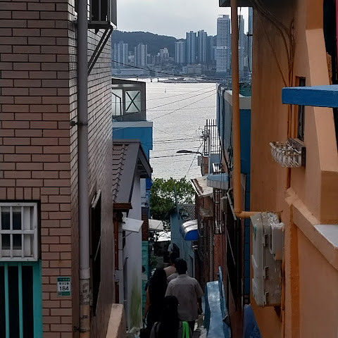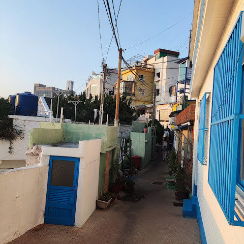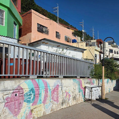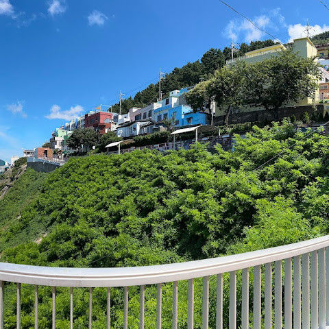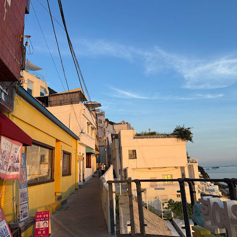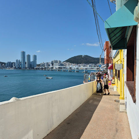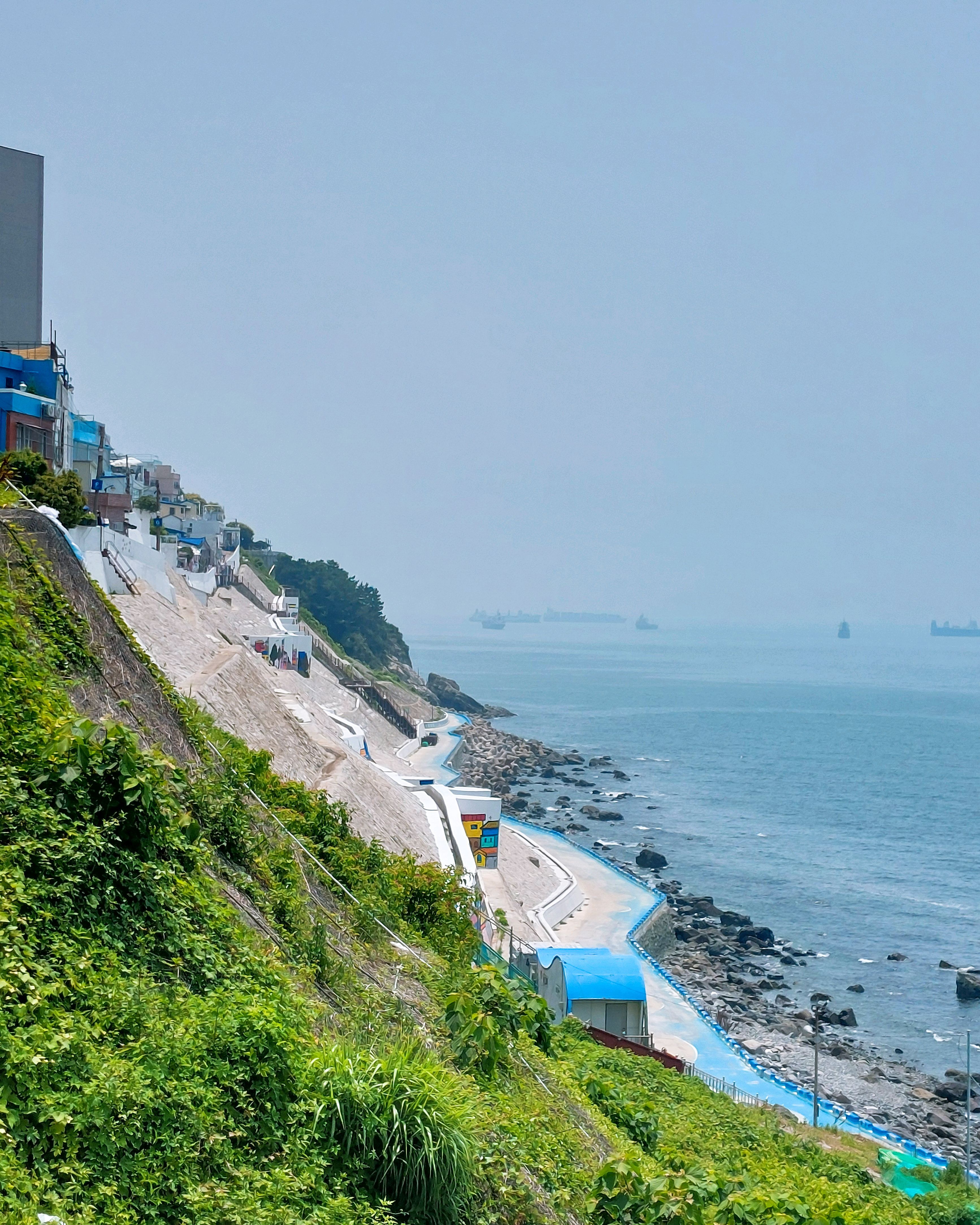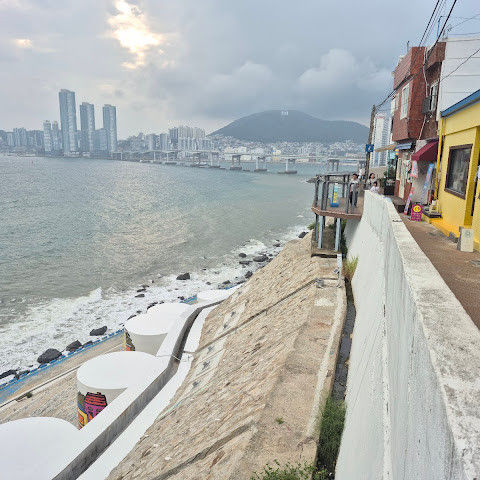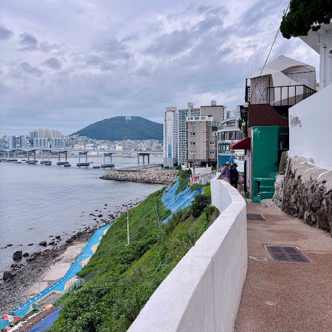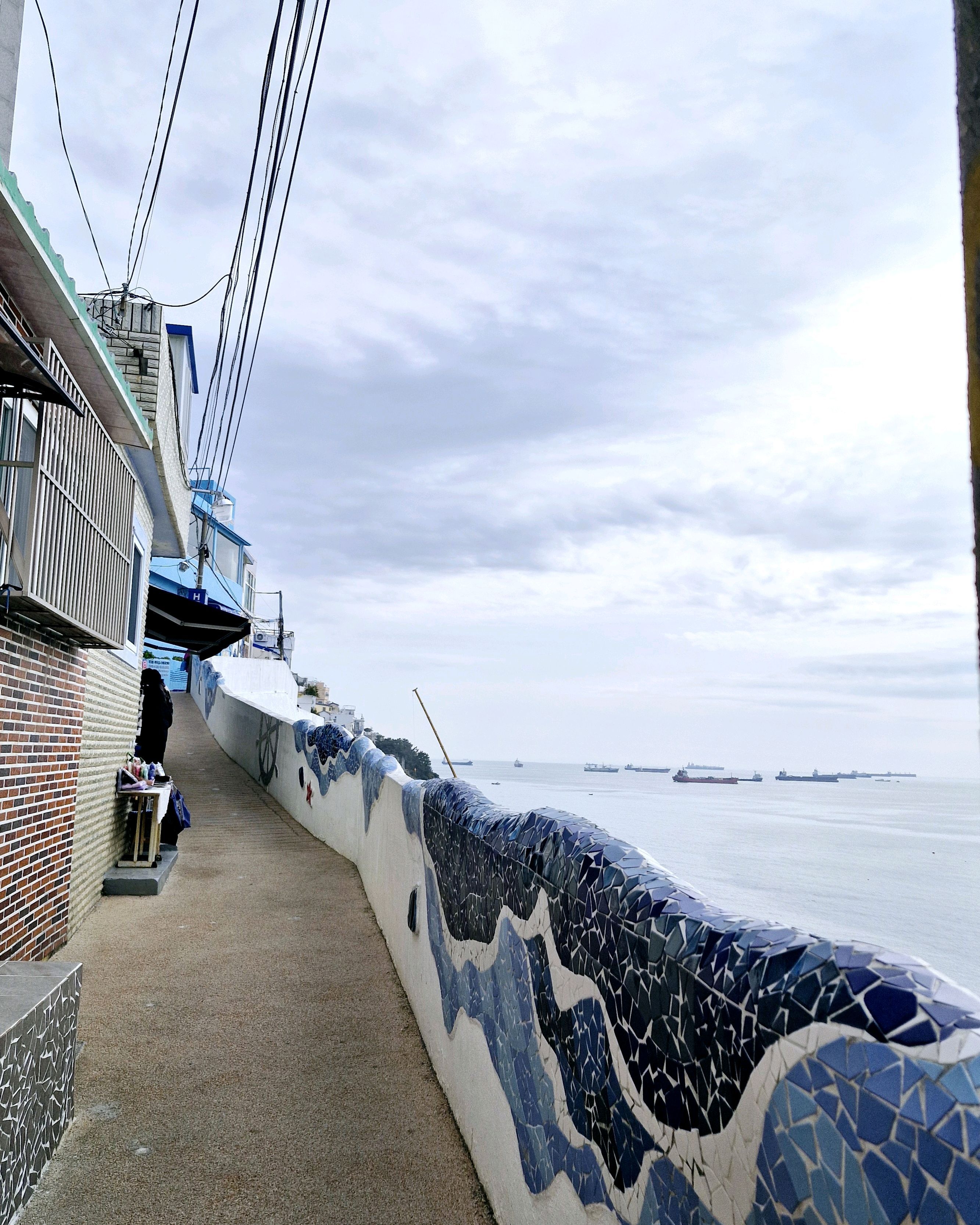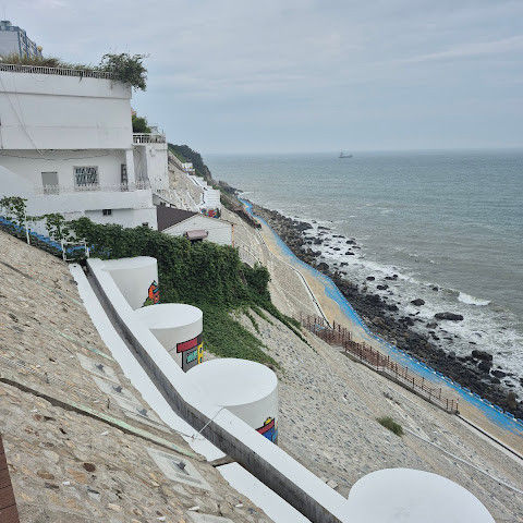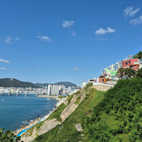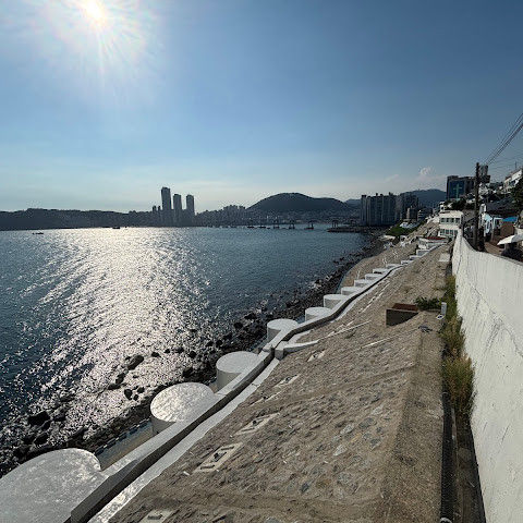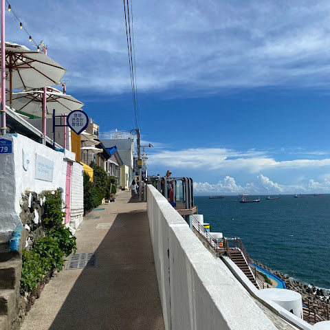 탁 트인 시야로 부산의 아름다운 해안선을 감상할 수 있습니다. 문화마을의 시작부터 끝까지 거리가 멀지 않아 사진도 찍고 산책도 즐길 수 있습니다.