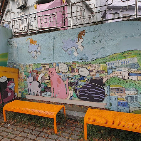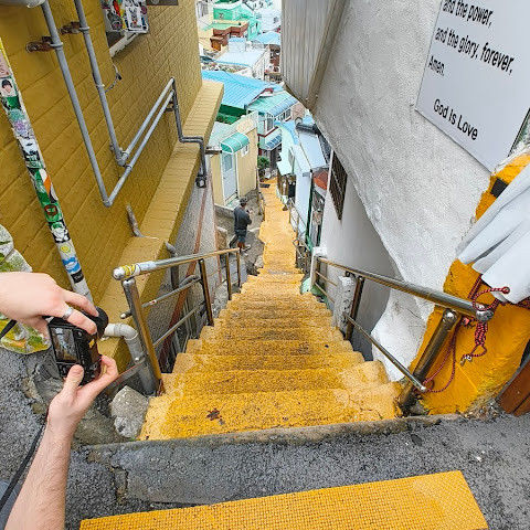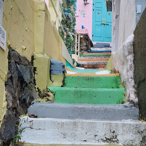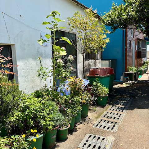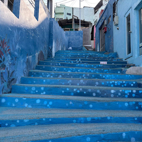 감천문화마을처럼 백산문화마을은 한국전쟁 당시 수많은 피난민들의 피난처였습니다. 최근에는 수많은 카페와 문화·창작 상점들이 들어서면서 인기 관광지가 되었습니다. 부산을 열 번도 넘게 방문했지만 백산문화마을은 처음이었습니다. 그날은 날씨가 너무 더워서 걷기가 너무 힘들었습니다. 인기 있는 동굴 구경은 포기했습니다. 날씨가 좀 선선해질 때까지 기다려 여유롭게 산책을 즐길 생각입니다. 아니면 카페를 찾아 오후 내내 시간을 보내는 것도 좋을 것 같습니다. 공용 화장실도 있고, 족욕 카페에 들러 족욕을 즐기며 휴식을 취할 수도 있습니다.