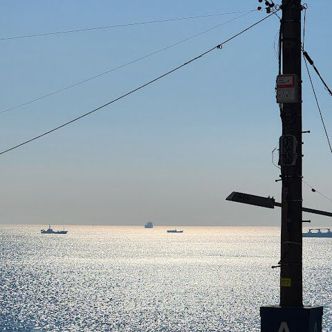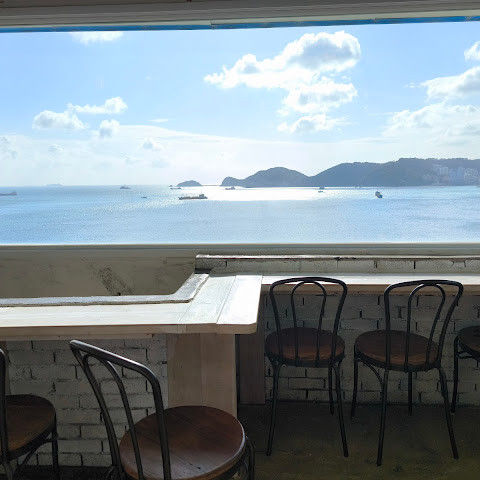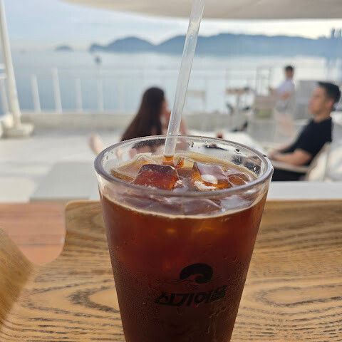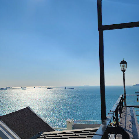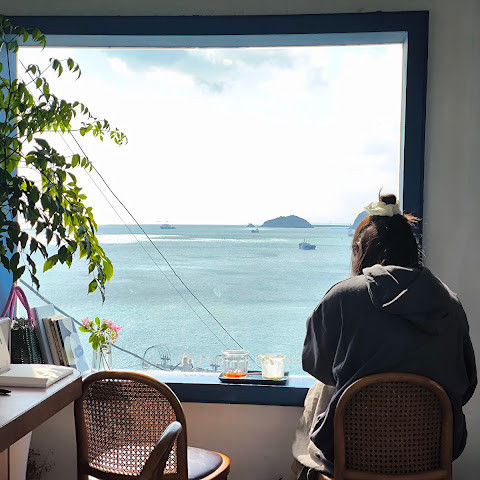 카페에 앉아 바라보는 바다 풍경은 마음을 편안하게합니다.