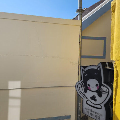 추천 카페: 레이지 캣, 귀여운 마스코트, 건물 내부에는 아름다운 코너가 많으며, 여러 층으로 구성되어 있어 다양한 경험을 할 수 있습니다.