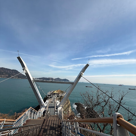 이번에 송도용궁구름다리에 다녀왔는데, 정말 환상적인 풍경에 감탄했어요! 이 보행로는 암남공원과 무인도인 동도를 연결하며, 길이는 약 127m입니다. 가장 독특한 점은 철망으로 된 다리 표면을 통해 아래로 부서지는 파도와 웅장한 암석들을 직접 감상할 수 있다는 거예요. 시각적으로 짜릿하고 매혹적인 경험을 선사합니다.