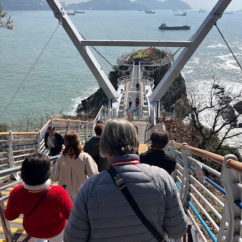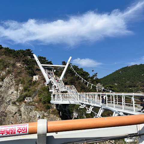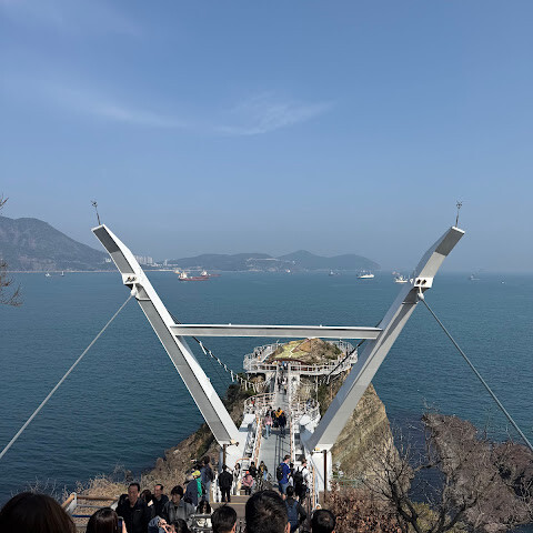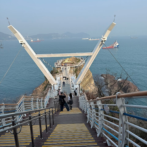 송도 케이블카를 타면 거의 다 도착하는 곳인데, 솔직히 기대는 별로 안 했어요. 이런 다리나 산책로는 종종 과대평가된 경우가 많다고 생각했거든요. 하지만 여기 다리는 정말 좋았어요.