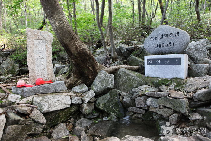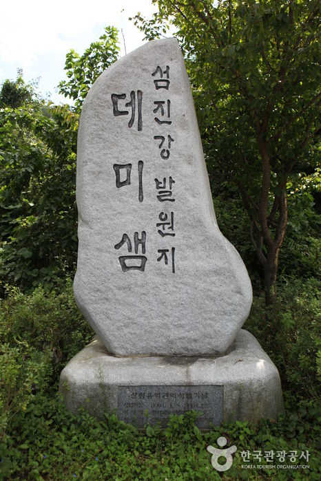 데미샘은 진안군 원신암마을 상추막이골에 위치해 있다. 섬진강의 발원지인 데미샘이 있는 봉우리를 천상데미라고 부르는데, 데미라는 말은 전라도 사투리인 ‘더미(봉우리)’에서 유래 되었다. 천상데미는 ‘섬진강에서 천상으로 올라가는 봉우리’란 뜻이다. 데미샘으로 가려면 원신암마을의 팔선정 정자에서부터 1.19km의 오솔길을 한 시간 여 정도 걸으면 다다를 수 있는데 자연 보존이 잘 되어 있어 자연생태학습장으로도 유용하다.