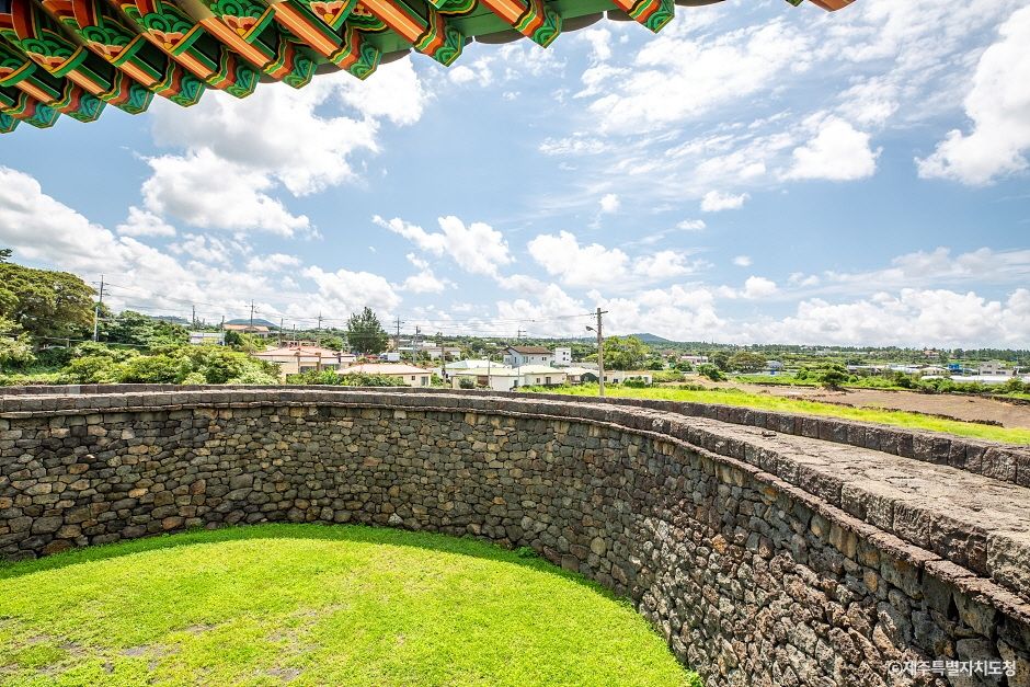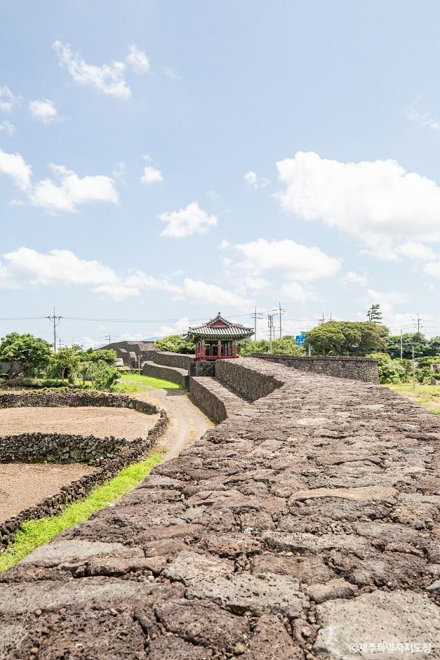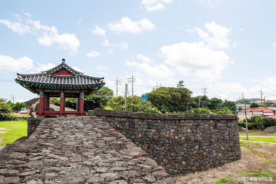 명월진성은 둘레가 3천 20척, 높이가 8척이었으며, 동쪽과 남쪽 및 서쪽에 각각 성문이 있었다. 성안에는 수량이 풍부한 샘이 있었고, 건물로는 객사·별창·군기고 등이 있었으나 지금은 하나도 남아 있지 않다. 명월포는 1270(고려 원종 11)에 삼별초의 별장 이문경이 고려에서 파견된 관군을 진압하고 탐라를 점령할 때 상륙한 곳이며, 김방경이 삼별초를 정벌할 때에도 그 일진이 이곳으로 상륙하였다. 더욱이 1374년(공민왕 23) 목장을 관리하기 위해 몽고에서 파견된 몽고인 목자들이 반란을 일으켰을 때, 이를 진압하기 위하여 최영 장군이 상륙한 곳도 명월포였다.