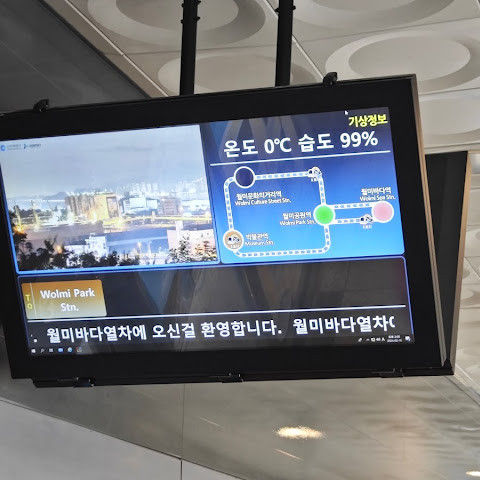 월미도 주변을 높은 위치에서 한바퀴 도는 관광열차이다 월미바다역이 시작점이다 성인은 8000원 이고 1층에 직원이 표를 사는데 도움을 준다 3층에 올라가면 열차 대기실과 승강장이 있다 넓고 쾌적하다 보통 20분 정도의 간격으로 열차가 다닌다고 한다 열차는 2량이며 작다 속도는 빠르지 않았고 40분을 돈다고 한다 해설사님이 타면서 계속 주변을 설명해 주셨다 스릴 넘치는건 아니지만 편안하게 주변 구경하는 장점이 있다 돌면서 몇개의 역이 있는데 정차하여 내리고 주변을 구경하고 다시 내린 역에서 나중에 오는 열차를 타고 돌 수 있다고 한다 월미도를 온다면 한번은 꼭 타볼만하다