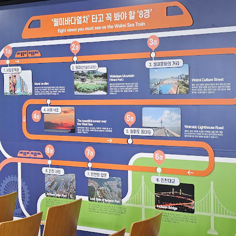 월미바다열차는 아름다운 모노레일 좌석에 앉아 월미도와 인천항의 아름다운 풍경을 감상하며 휴식을 취할 수 있는 멋진 방법입니다. 모두가 사진을 찍고 멋진 풍경을 감상하는 것을 좋아합니다. 왕복으로만 가면 한 시간 정도 걸립니다. 저희는 정말 만족스러웠습니다. 늦은 시간에는 사람이 많아 일찍 가서 차이나타운에서 멋진 점심을 먹을 수도 있습니다. 거의 모든 기사가 차이나타운까지 데려다줄 수 있습니다. 한국에서 가장 멋진 경험 중 하나였습니다. 게다가 스타벅스 커피값과 비슷하거나 그 이하입니다. 월요일에는 휴무인 것 같습니다.