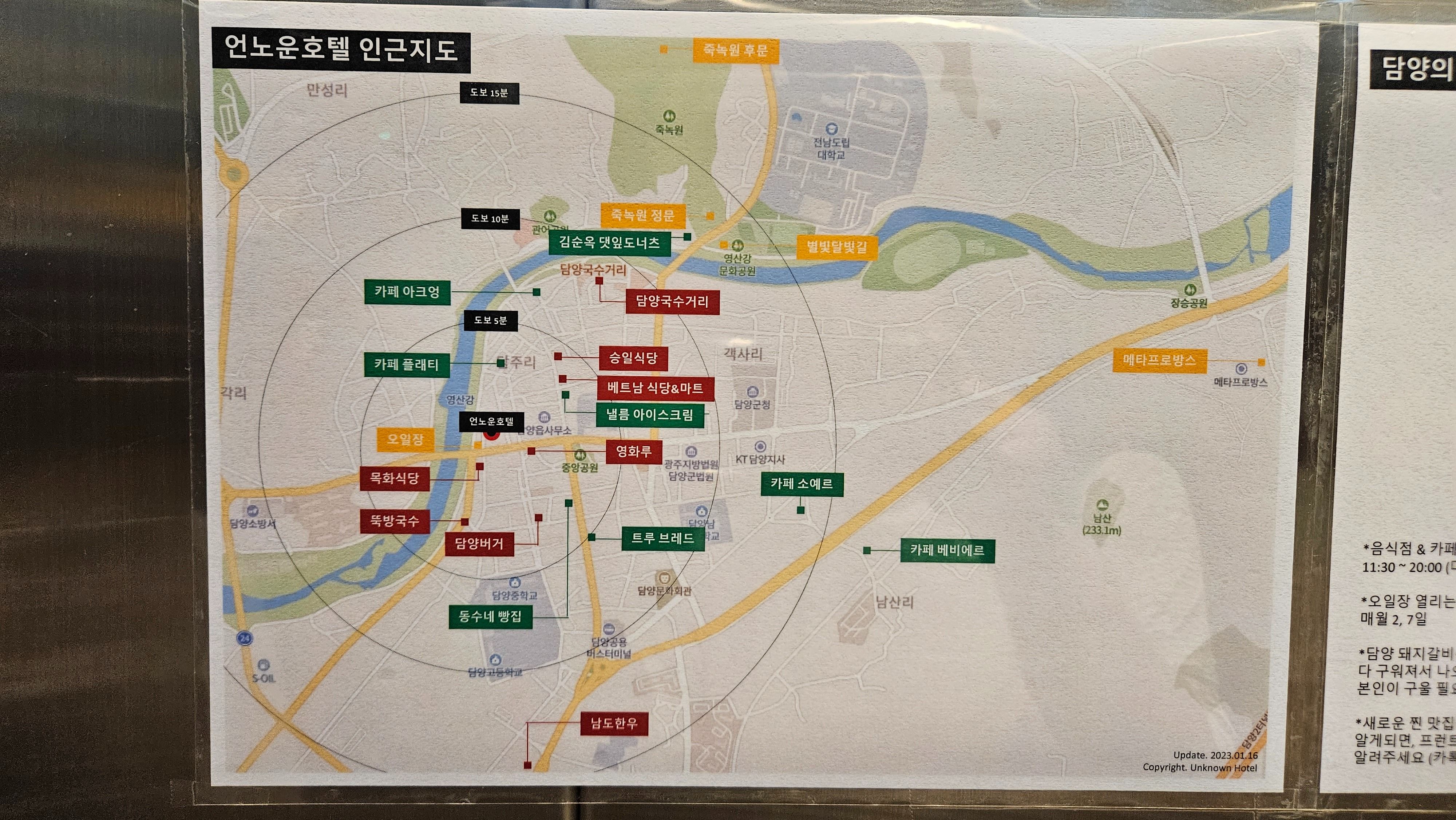 - 죽녹원과 관방제림이 차로 5~10분거리에 있음. 걸어서 갈 수 있는 거리에 맛집들이 많음